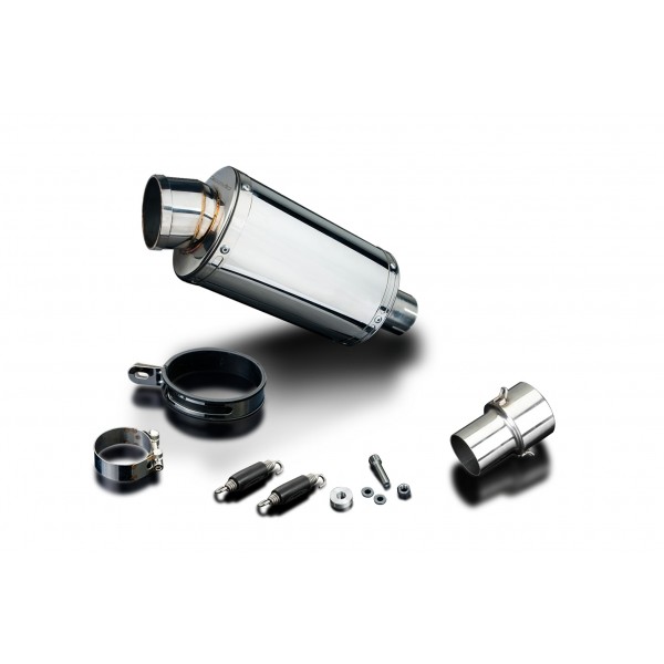 Les KIT-silencieux Delkevic sont disponibles pour beaucoup de marques et modèles de bécane. Le KIT-silencieux inclut : le silencieux nécessaire avec chicane amovible, plus tube-raccord, sangle de rétention, joint, collier-de-serrage et fixatif.