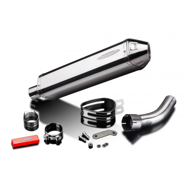 • ce jeux comporte - Silencieux Delkevic avec chicane amovible, tube raccord, sangle de silencieux, colliers, hex head bolt, vis, rondelles, lock nuts et offset drop support.