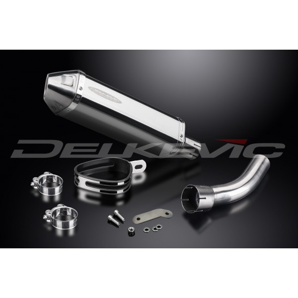• ce jeux comporte - Silencieux Delkevic avec chicane amovible, tube raccord, sangle de silencieux, colliers, hex head bolt, vis, rondelles, lock nuts et offset drop support.