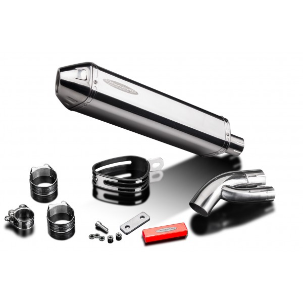 • ce jeux comporte - Silencieux Delkevic avec chicane amovible, tube raccord, sangle de silencieux, colliers, écrous-nylon, vis, rondelles et support.