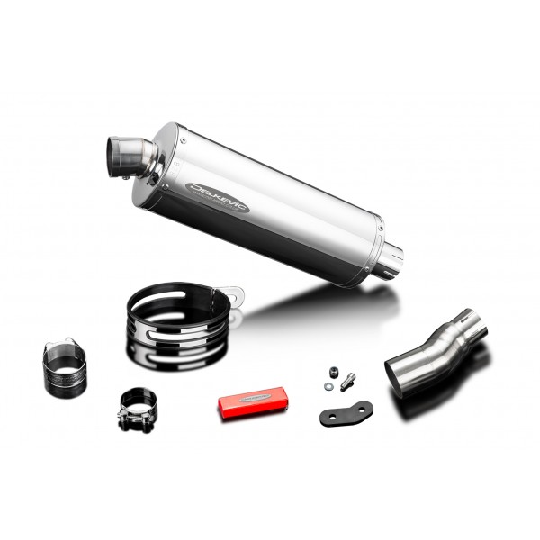 Les KIT-silencieux Delkevic sont disponibles pour beaucoup de marques et modèles de bécane. Le KIT-silencieux inclut : le silencieux nécessaire avec chicane amovible, plus tube-raccord, sangle de rétention, joint, collier-de-serrage et fixatif.