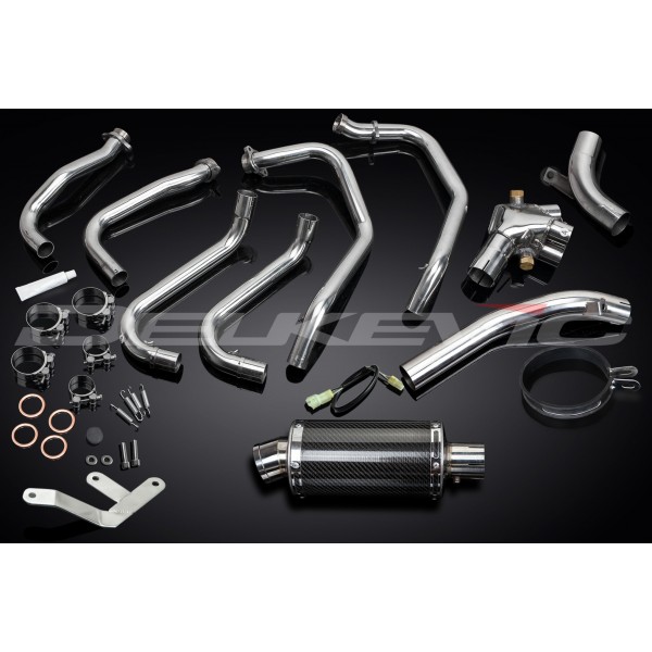 • ce jeux comporte - Collecteur Delkevic, tube raccord, silencieux avec chicane amovible, sangle de silencieux, colliers, joints, coutchouc arret-béquille, crochets-ressort, support et kit de câblage.