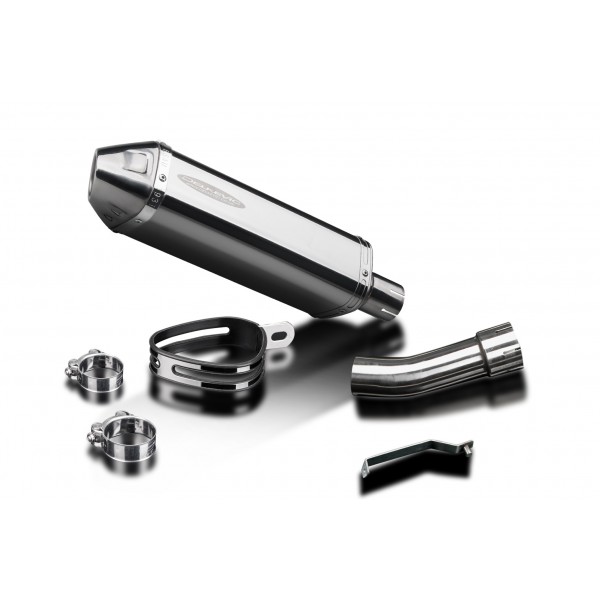 Les KIT-silencieux Delkevic sont disponibles pour beaucoup de marques et modèles de bécane. Le KIT-silencieux inclut : le silencieux nécessaire avec chicane amovible, plus tube-raccord, sangle de rétention, joint, collier-de-serrage et fixatif.