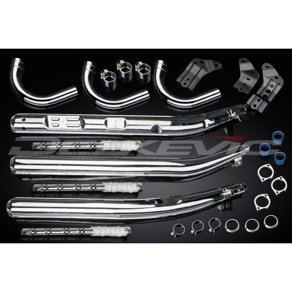 KAWASAKI H2B H2C 1974-1975 Echappement Complet 3-3 Acier Chromé REPLIQUE OEM