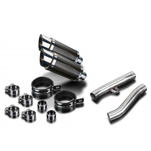 • ce jeux comporte - Silencieux Delkevic avec chicanes amovibles, tubes raccord, sangles de silencieux, colliers, joints, écrous-nylon, vis, coutchouc arret-béquille, rondelles et support.
