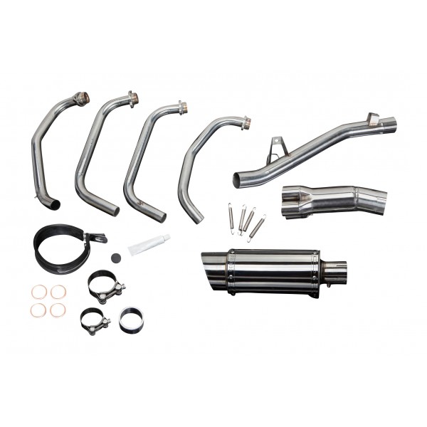• ce jeux comporte - Collecteur Delkevic, tube raccord, silencieux avec chicane amovible, sangle de silencieux, colliers, joints, coutchouc arret-béquille et crochets-ressort.