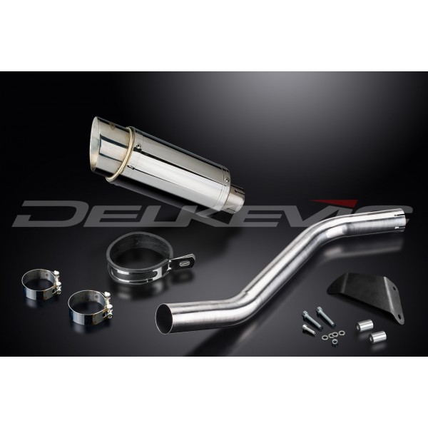 Les KIT-silencieux Delkevic sont disponibles pour beaucoup de marques et modèles de bécane. Le KIT-silencieux inclut : le silencieux nécessaire avec chicane amovible, plus tube-raccord, sangle de rétention, joint, collier-de-serrage et fixatif.