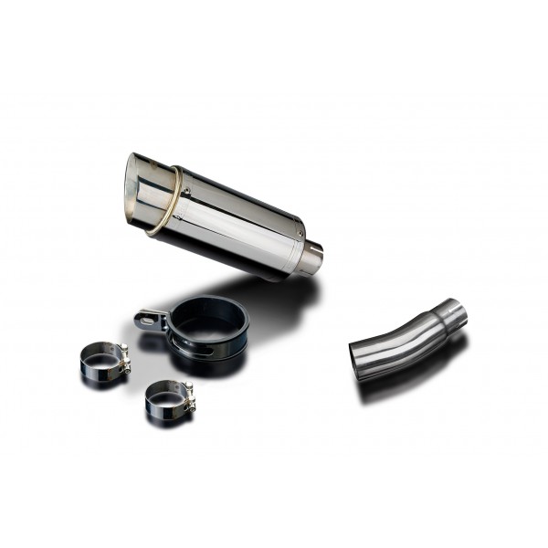 Les KIT-silencieux Delkevic sont disponibles pour beaucoup de marques et modèles de bécane. Le KIT-silencieux inclut : le silencieux nécessaire avec chicane amovible, plus tube-raccord, sangle de rétention, joint, collier-de-serrage et fixatif.