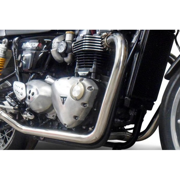 Etiquettes : triumph, thruxton, 1200, r/rs, 2016-2024, echappement, 2-2, silencieux, 450mm, ovale, inox, COM06EY