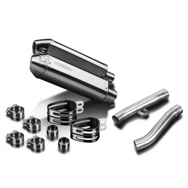 • ce jeux comporte - Silencieux Delkevic avec chicanes amovibles, tubes raccord, sangles de silencieux, colliers, joints, écrous-nylon, vis, coutchouc arret-béquille, rondelles et support.
